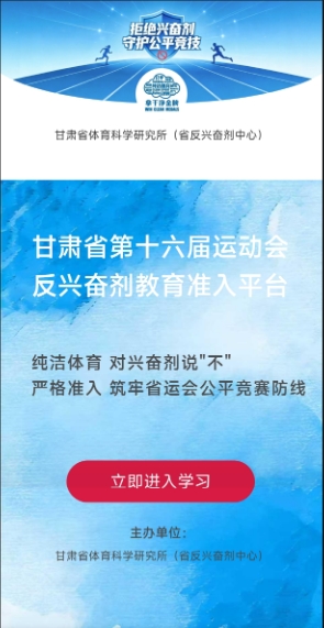 准入工作采取线上与线下相结合的学习教育方式,依托“甘肃省第十六届运动会反兴奋剂教育准入平台”开展学习考试。同时鼓励各参赛单位结合实际开展线下讲座,并针对未成年运动员家长开设教育专栏。