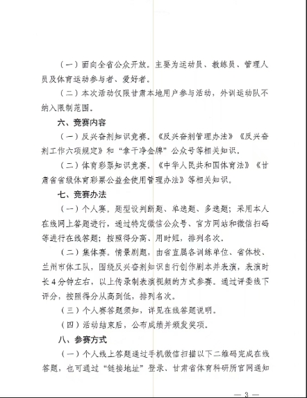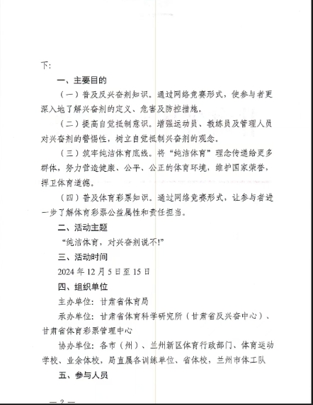 :甘肃省体育局关于举办2024年全省反兴奋剂知识网络竞赛的通知