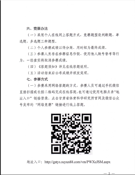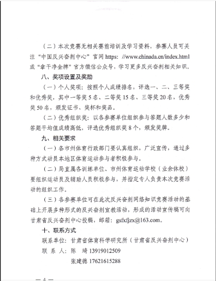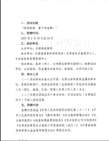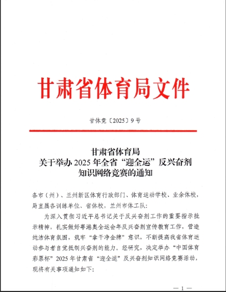 甘肃省体育局关于举办2025年全省“迎全运”反兴奋剂知识网络竞赛的通知