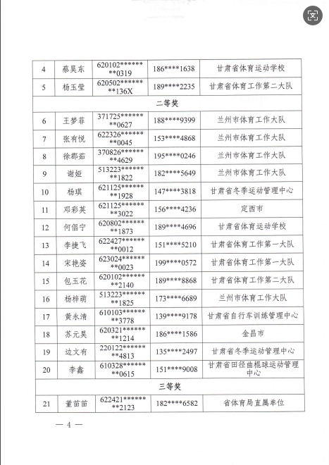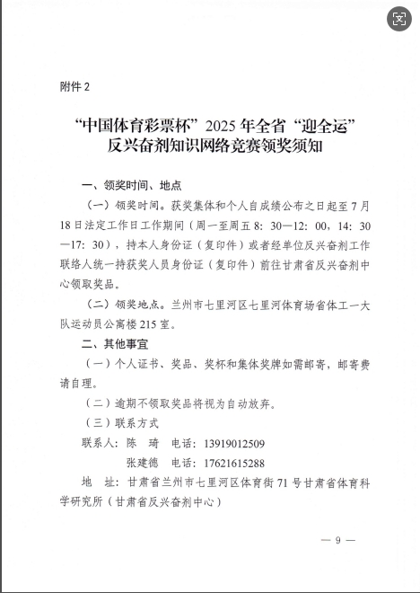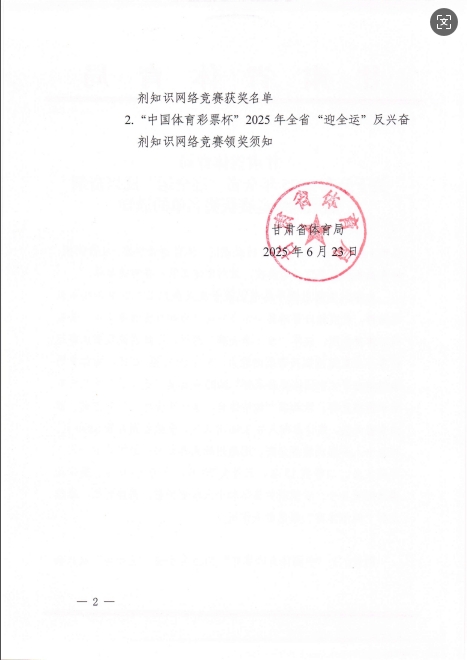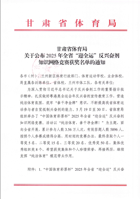 甘肃省体育局关于公布2025年全省“迎全运”反兴奋剂知识网络竞赛获奖名单的通知