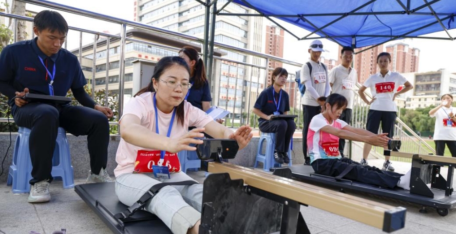 在为期三天的比赛中,共设置了30秒跳绳、立定跳远、15米绕杆跑、坐位体前屈、男子1000米跑和女子800米跑五个项目。比赛分男、女两个组别,按参赛者年龄18岁-44岁,设置了5个年龄组别。
